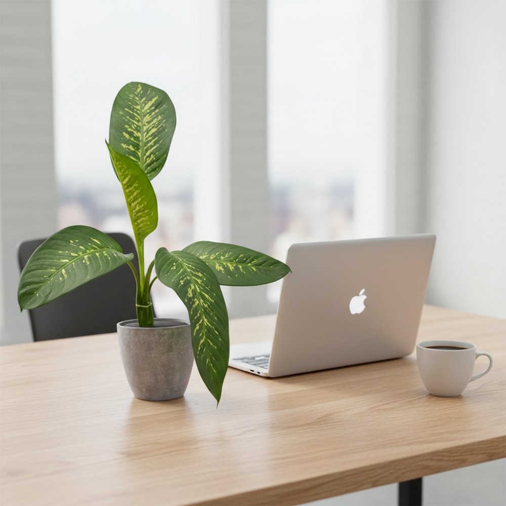 - إكتشف جمال الطبيعة مع نبات الدفمباخيا، الذي يضيف لمسة من الجمال والهدوء على مكتبك الخاص، مما يعزز الشعور بالراحة والإلهام في بيئة العمل.